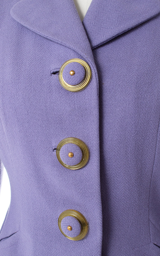 1940s Lavender Wool Skirt Suit with Huge Buttons | small/medium
