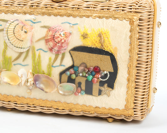 1960s Seashell Wicker & Lucite Novelty Box Purse by Atlas
