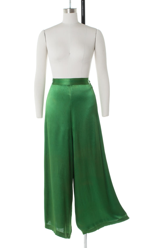 1930s Emerald Rayon Satin Wide-Leg Pants | small