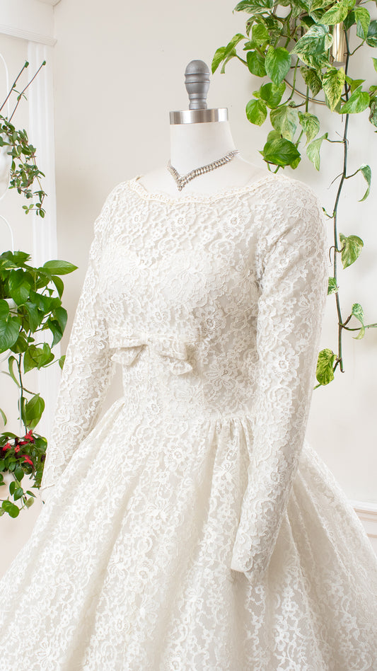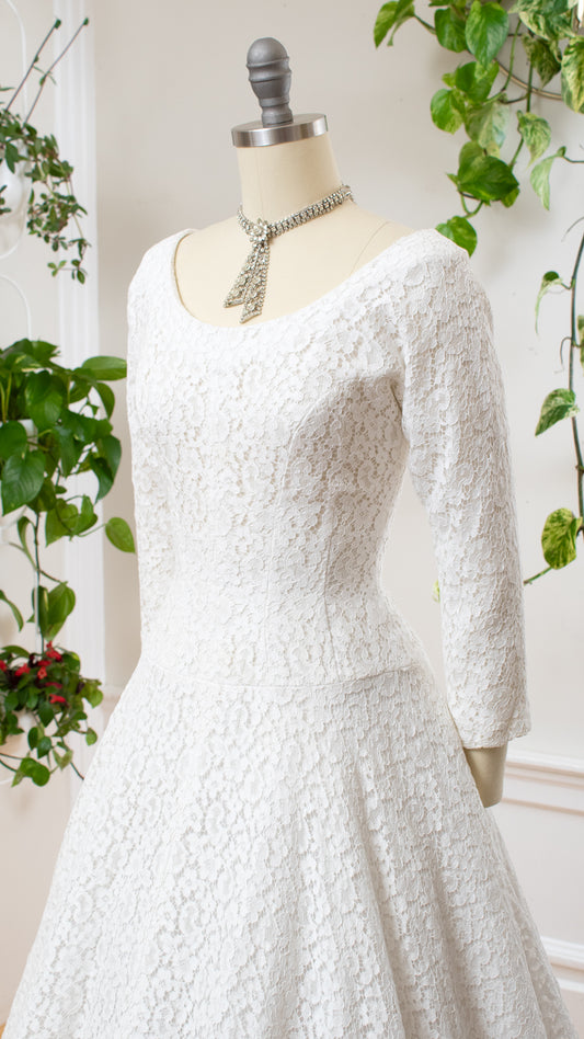 1950s 1960s White Lace Sweetheart Wedding Gown | medium