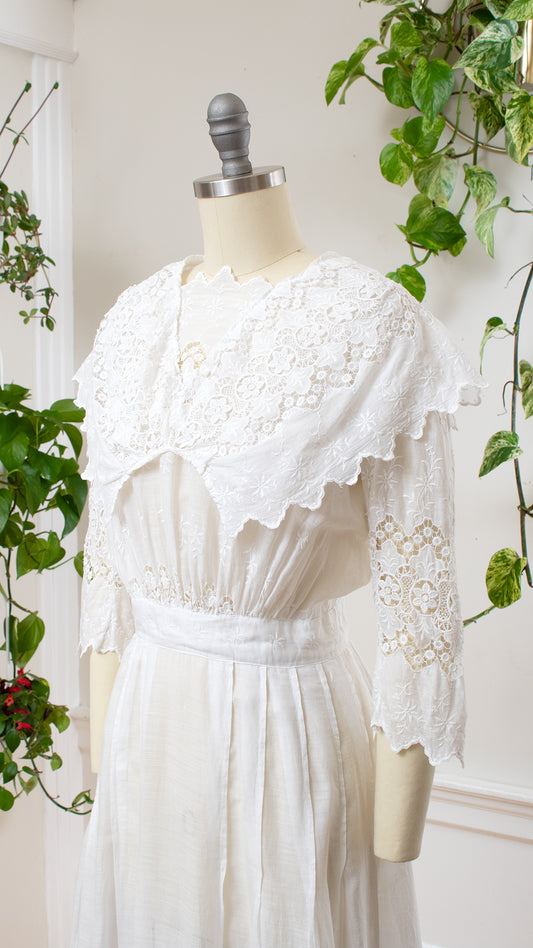 Antique Edwardian 1910s White Cotton & Lace Dress | small