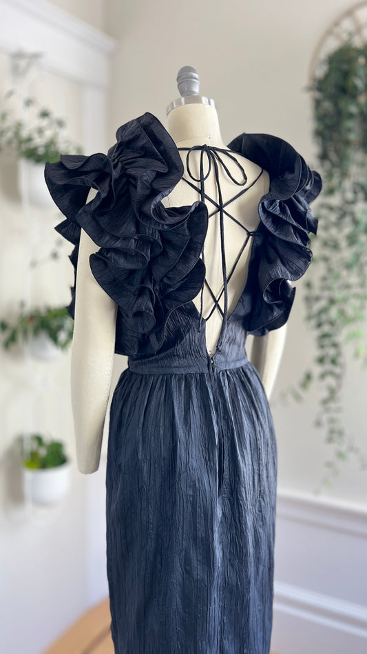 1980s Lace-Up Ruffled Dress | small