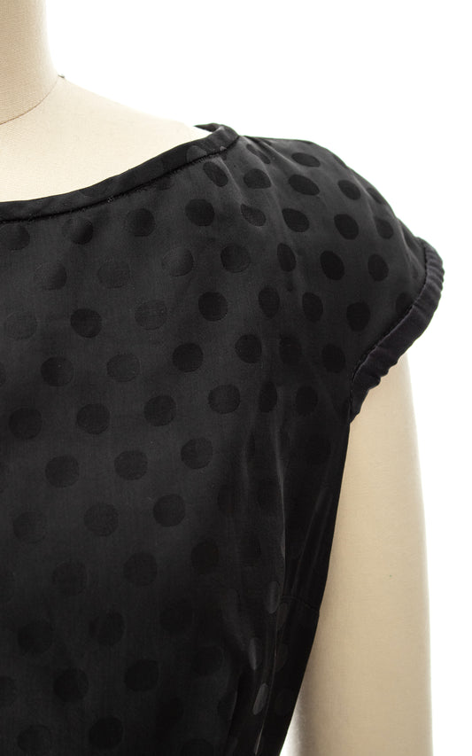 1950s Polka Dot Black Silk Dress with Pockets | small