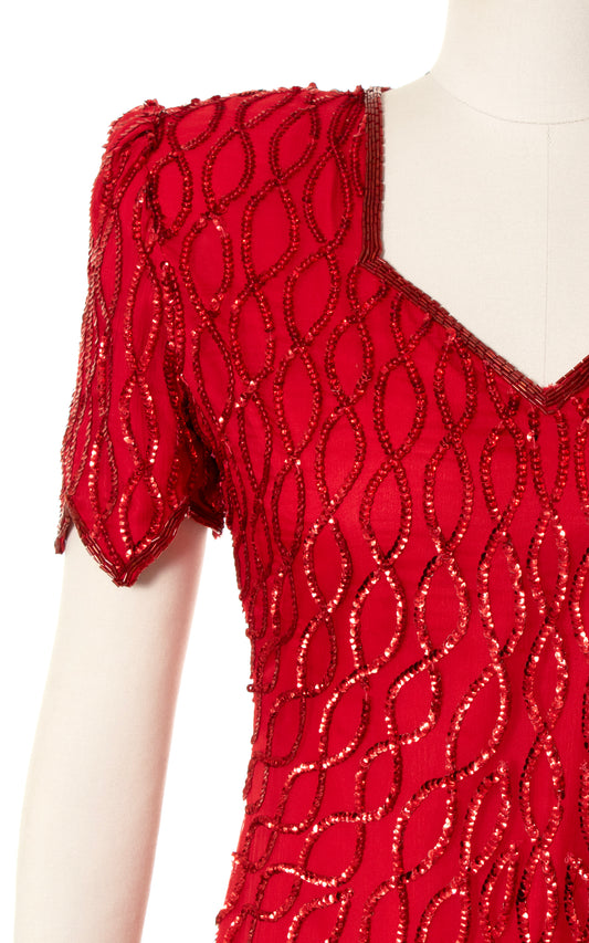 1980s Silk Beaded Tassels Party Dress | small/medium