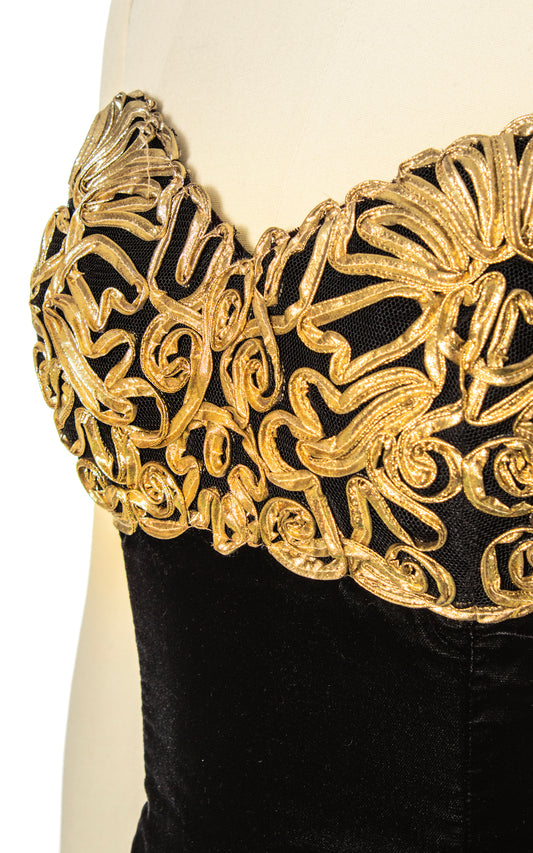 1970s 1980s NEW LEAF Metallic Ruched Gown | small/medium