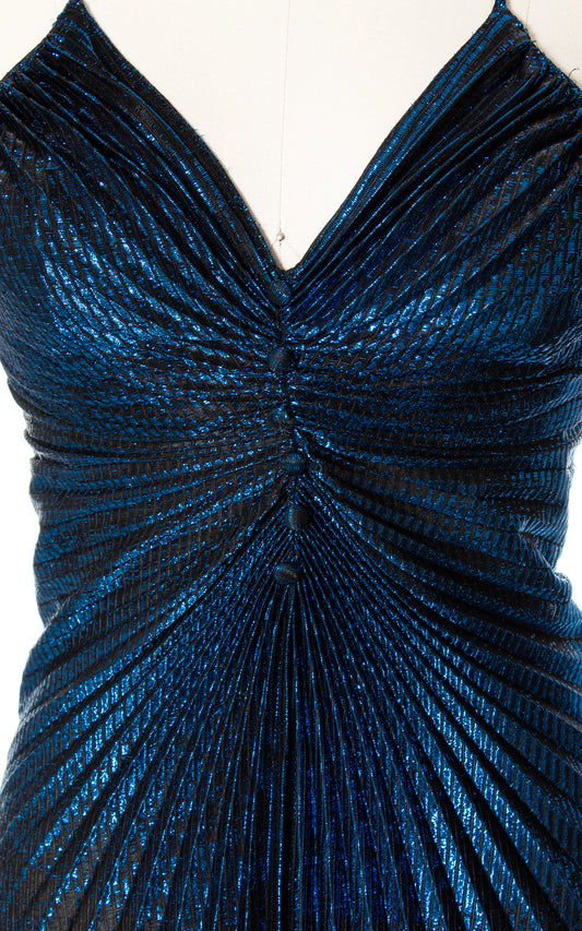 1980s Travilla Style Metallic Blue Pleated Dress | x-small/small