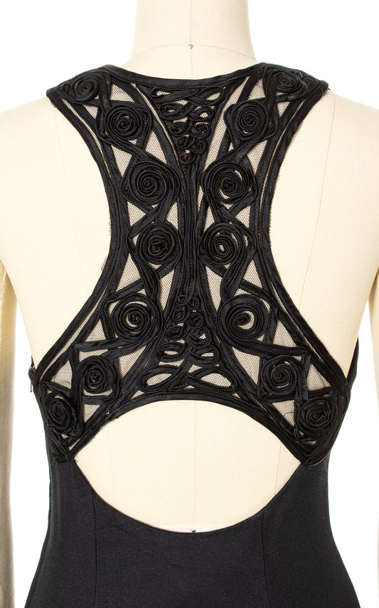 2000s Y2K DEADSTOCK Metallic Lace Open Back Gown | medium/large