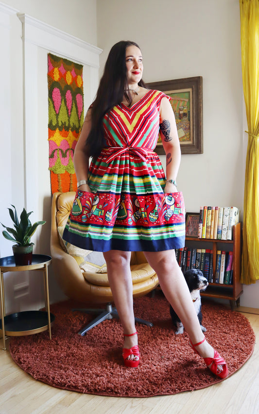 1940s Mexican Novelty Border Print Wrap Dress | medium/large