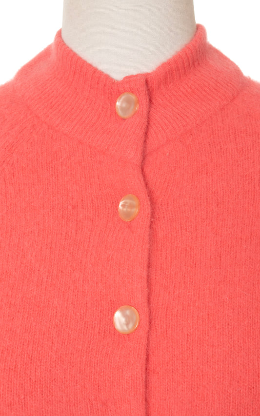 1950s 1960s Salmon Pink Knit Angora Wool Cardigan | small/medium