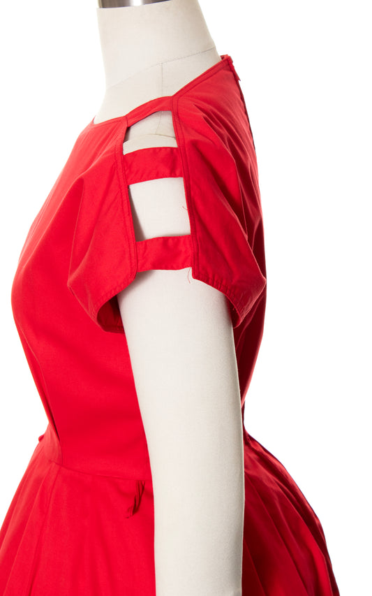 1980s does 1950s Cutout Shoulder Day Dress with Giant Pockets |
