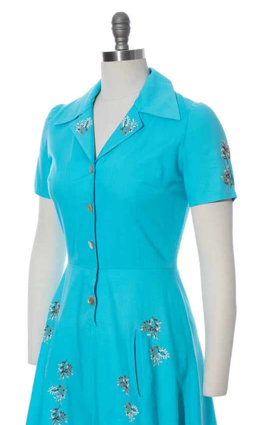 1970s does 1950s Floral Embroidered Dress with Pockets | small