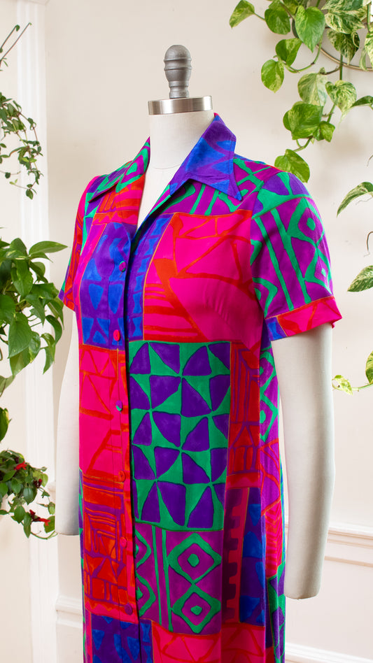 1960s 1970s Hawaiian Geometric Shirtwaist Maxi Dress | small/medium