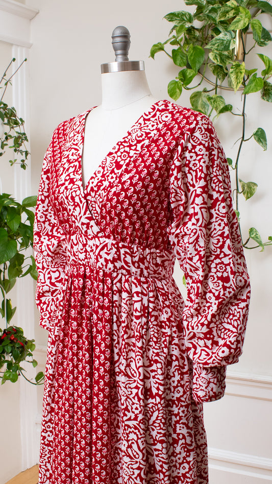 1970s Hawaiian Floral Barkcloth Accordion Pleated Kaftan | xs-xl