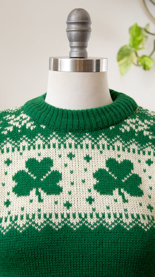 1970s Irish Clover Knit Wool Sweater | small/medium/large