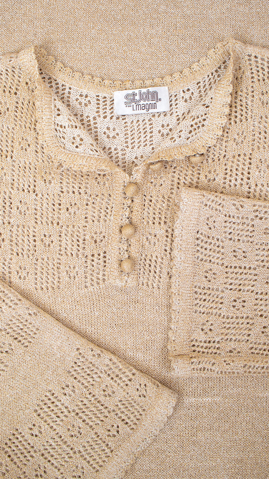 1970s ST. JOHN Metallic Gold Knit Maxi Dress | small/medium