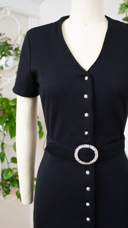 1970s Rhinestone Buttons Black Knit Maxi Dress | x-small/small