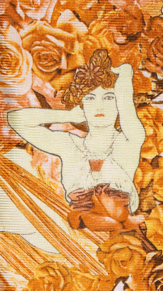 1970s Alfonse Mucha Art Nouveau Novelty Print Blouse | women's large / men's small