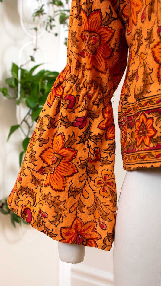 1970s Indian Floral Bell Sleeve Crop Top | small/medium