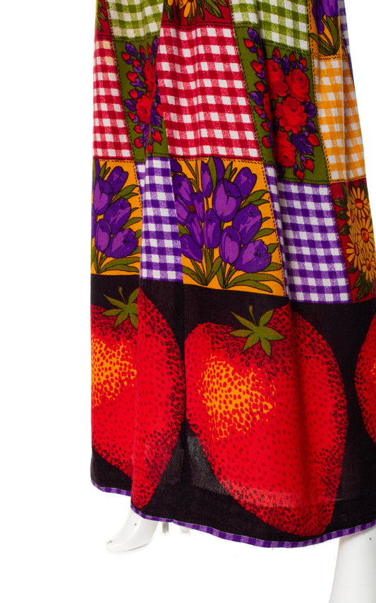 1970s Strawberry Border Print Maxi Dress | small