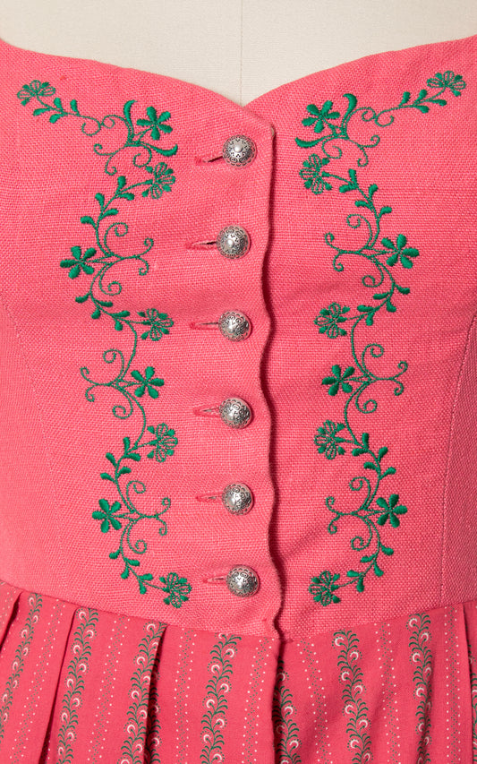 1970s Floral Striped Cotton Dirndl Dress | small