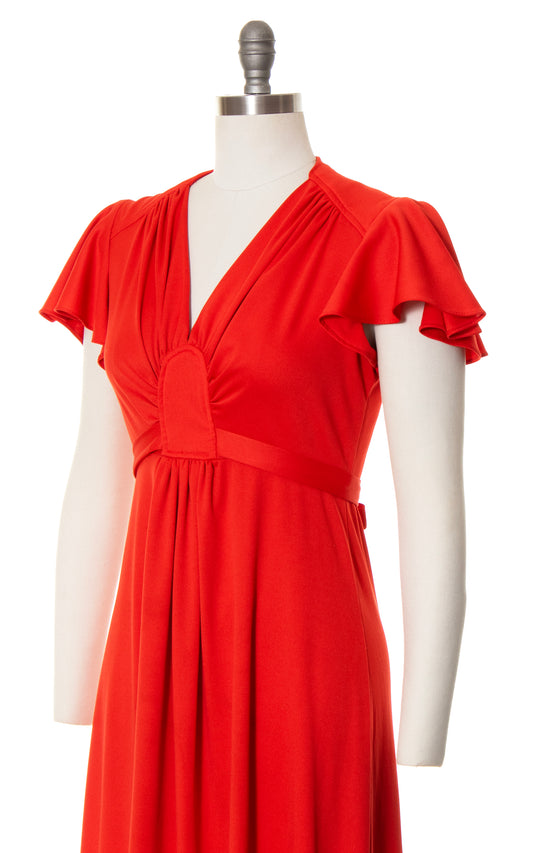1970s Flutter Sleeve Tie Waist Maxi Dress | small