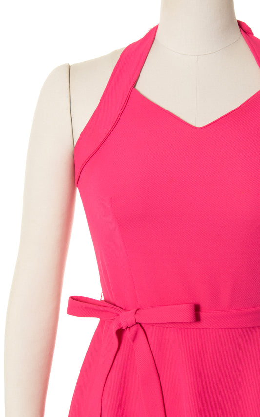 1970s Hot Pink Halter Skater Dress | small