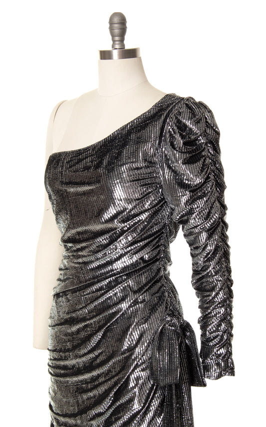 1970s 1980s NEW LEAF Metallic Ruched Gown | small/medium