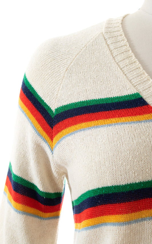 1970s Rainbow Striped Drawstring Sweater | small/medium