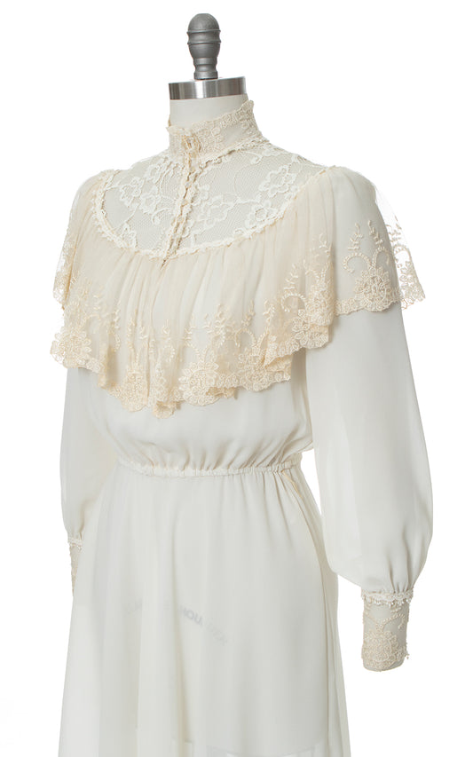 1970s does Victorian Sheer Ruffled Dress | x-small/small/medium