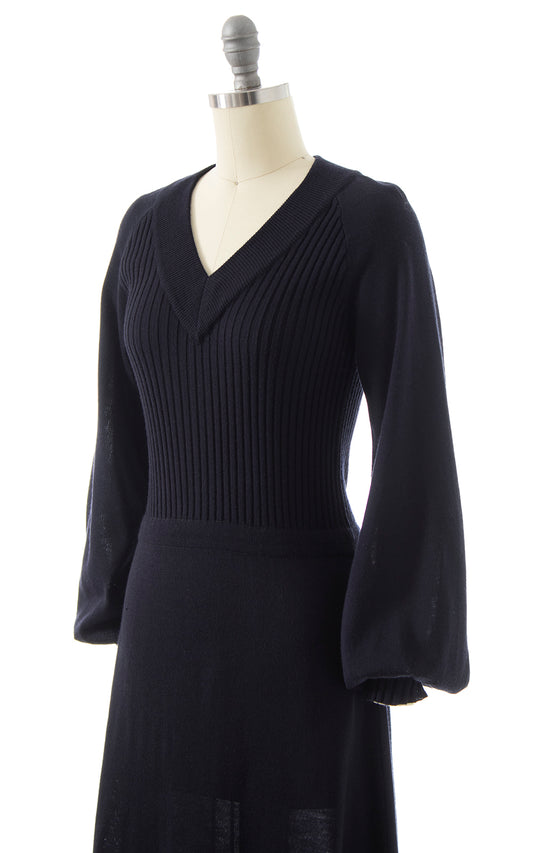 1970s Bishop Sleeve Knit Maxi Dress | x-small/small/medium