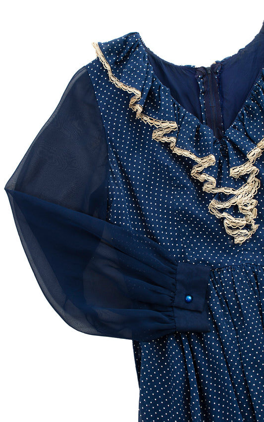 1970s Polka Dot Ruffled Sheer Sleeve Dress | medium