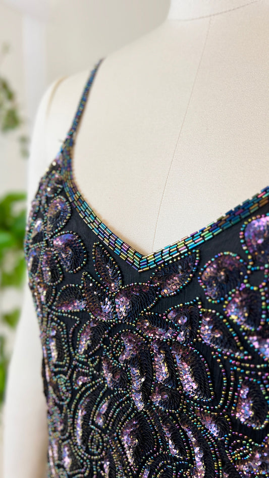 1980s Silk Sequin Beaded Party Dress | small/medium