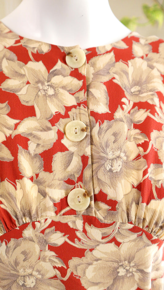 1980s KAREN ALEXANDER Feathers & Floral Shirt Dress | small/medium