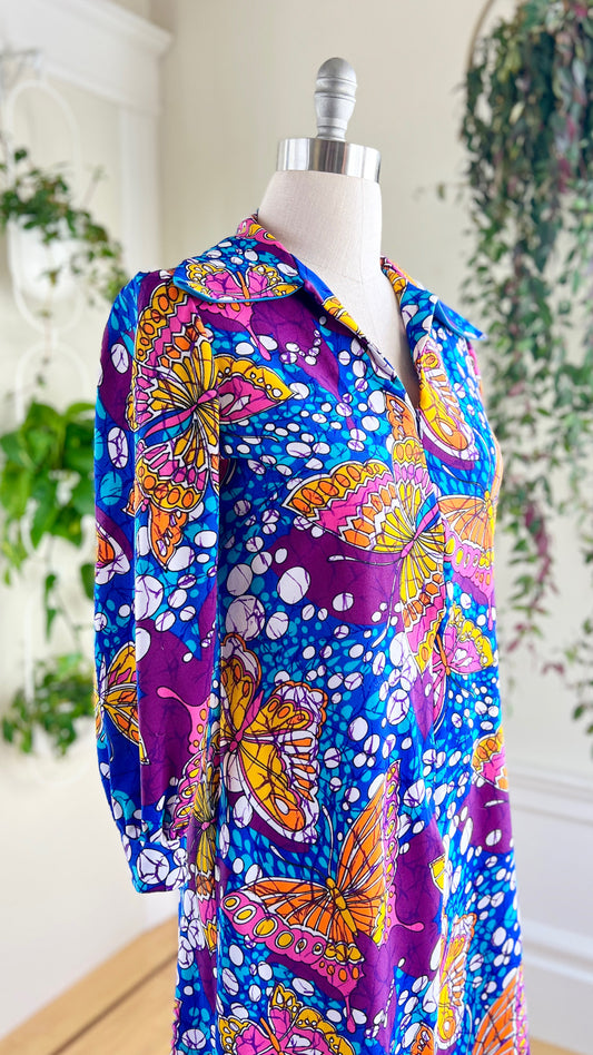 1970s Butterfly Novelty Print Shift Dress | large/x-large