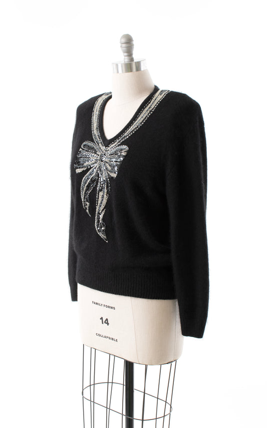 1990s Beaded Trompe L'oeil Bow Knit Silk Angora Sweater | large/x-large