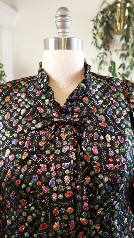 1970s Metallic Jewels Party Dress & Jacket Set | x-large