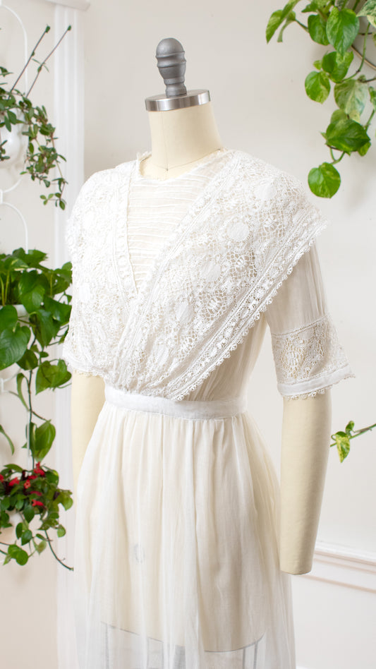 Antique Edwardian 1910s White Cotton & Lace Dress | x-small