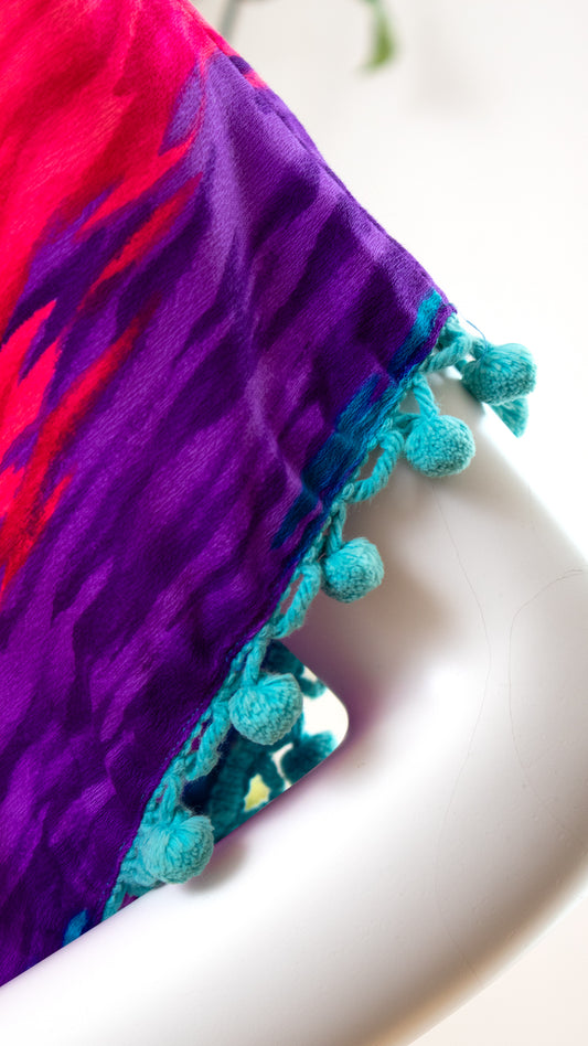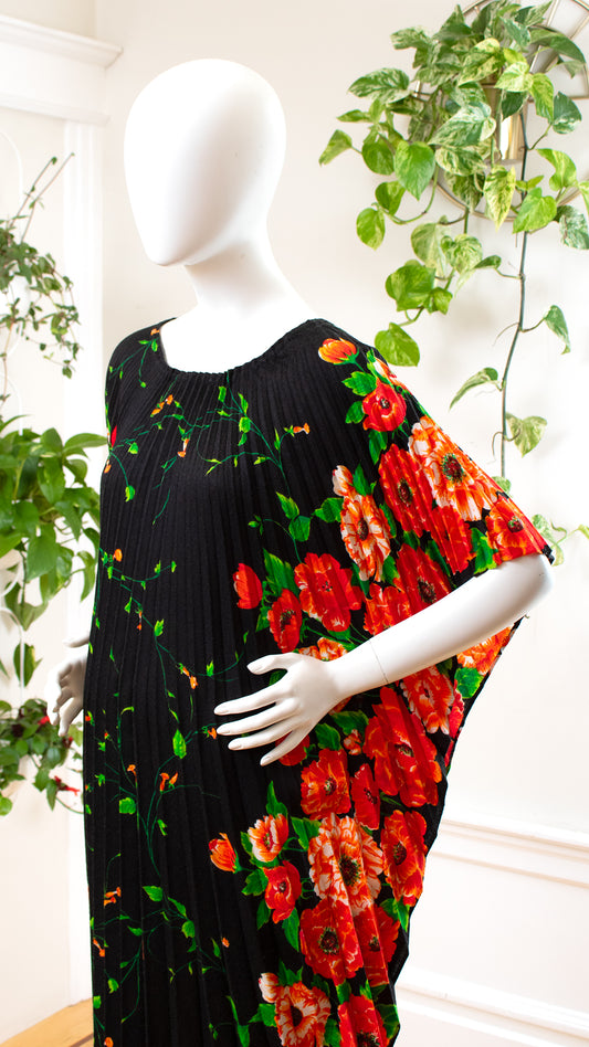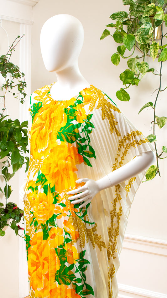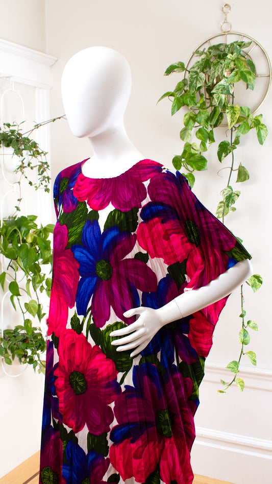 1970s Hawaiian Floral Ombré Accordion Pleated Kaftan | xs-xl