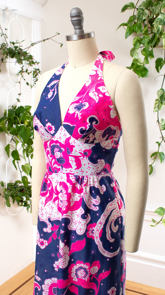 1970s KAMEHAMEHA Floral Halter Maxi Dress | x-small