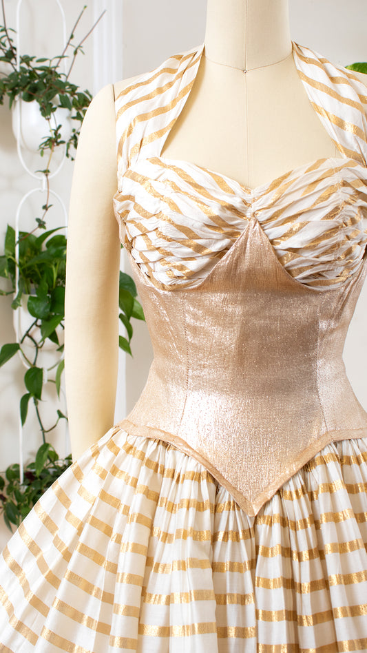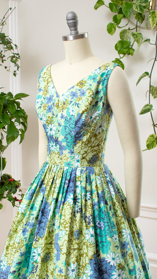 1950s Rhinestone Studded Floral Halter Dress | x-small