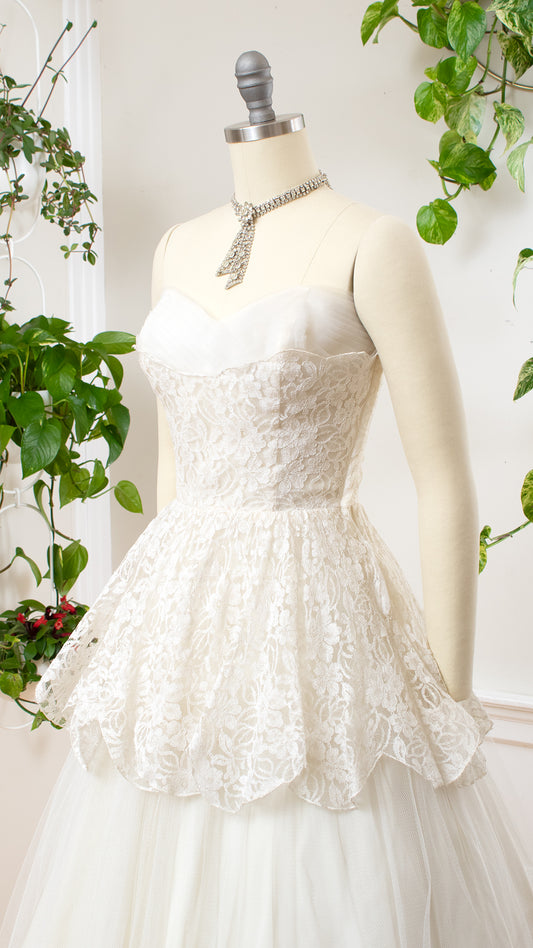 1950s Strapless Tulle & Lace Wedding Gown | x-small/small