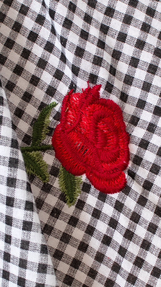 Modern UNIQUE VINTAGE "Golightly" Rose Embroidered Gingham Sundress | x-small/small