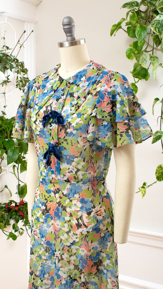 1930s Floral Cotton Voile Maxi Dress | x-small/small