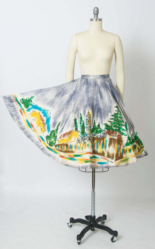 1950s Mexican Hand-Painted Novelty Print Sequin Circle Skirt | x-small