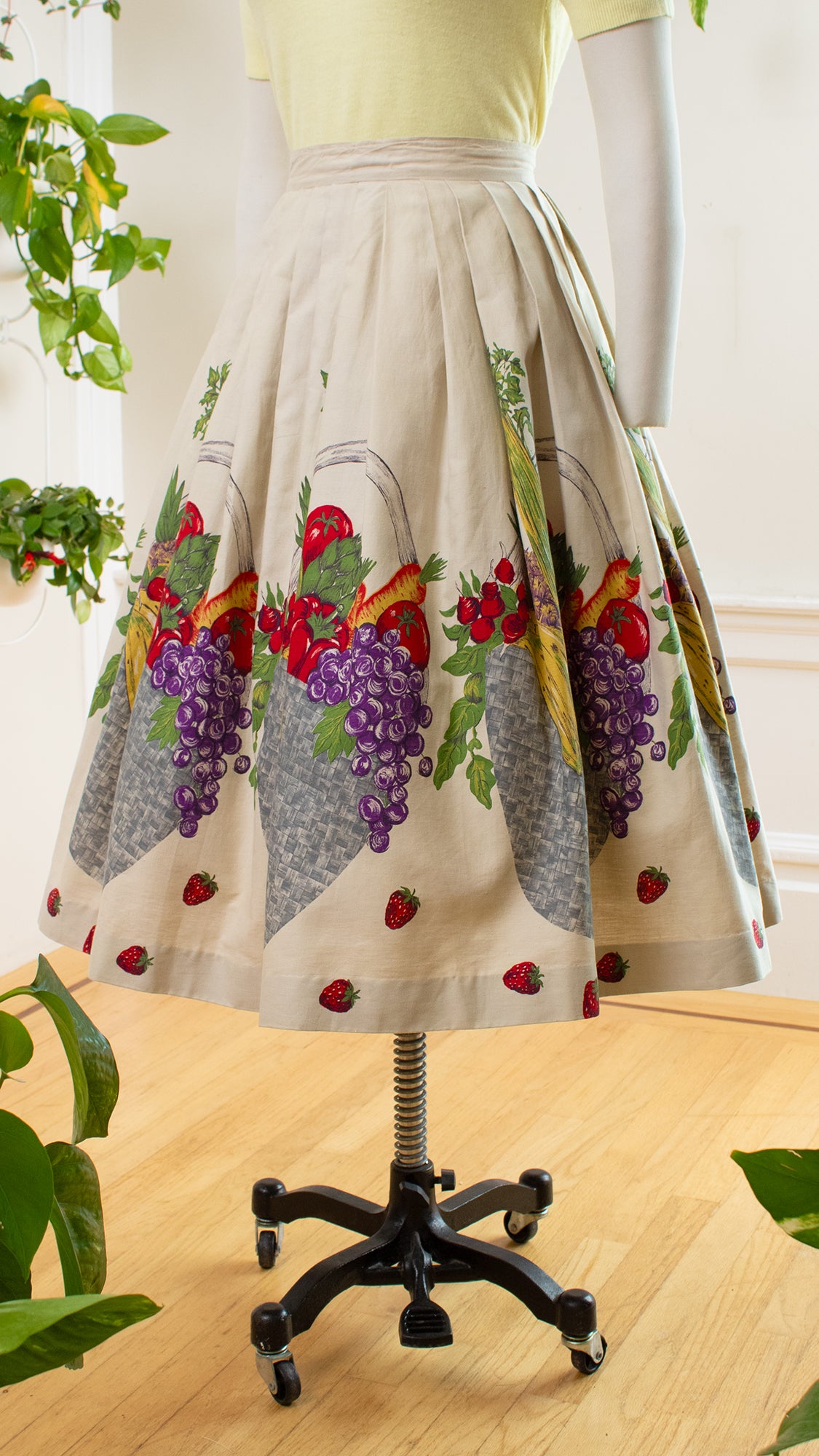 1950s Fruit Basket Novelty Border Print Skirt | small