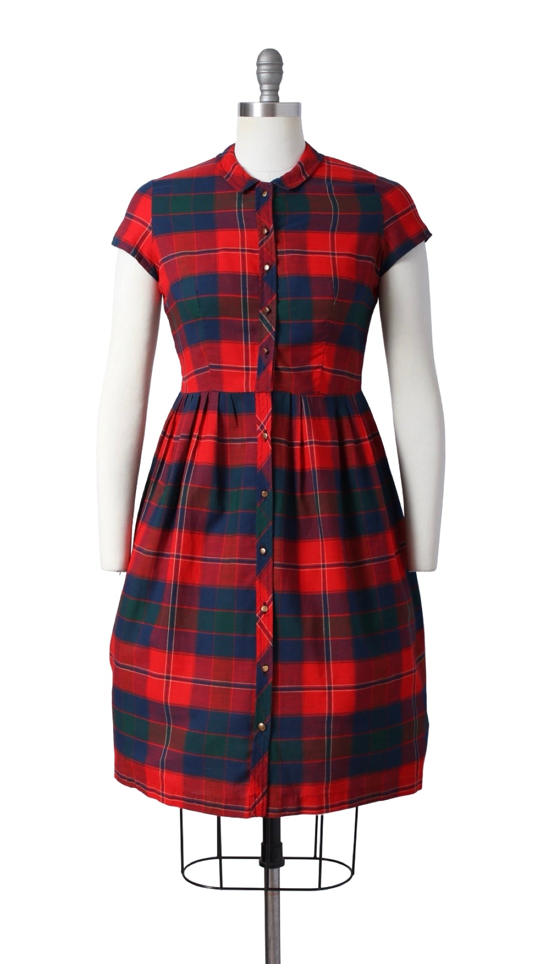 1950s 1960s Plaid Shirtwaist Dress | small/medium
