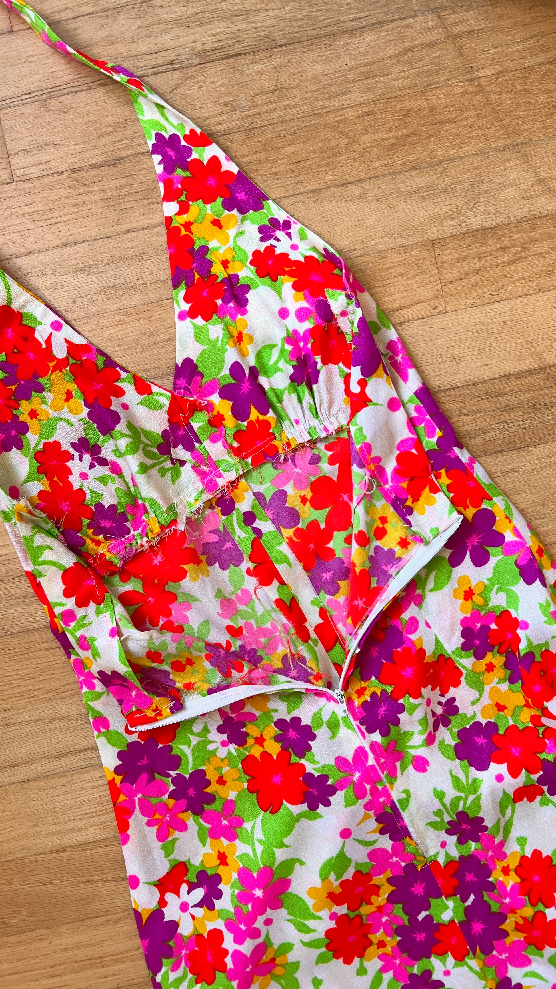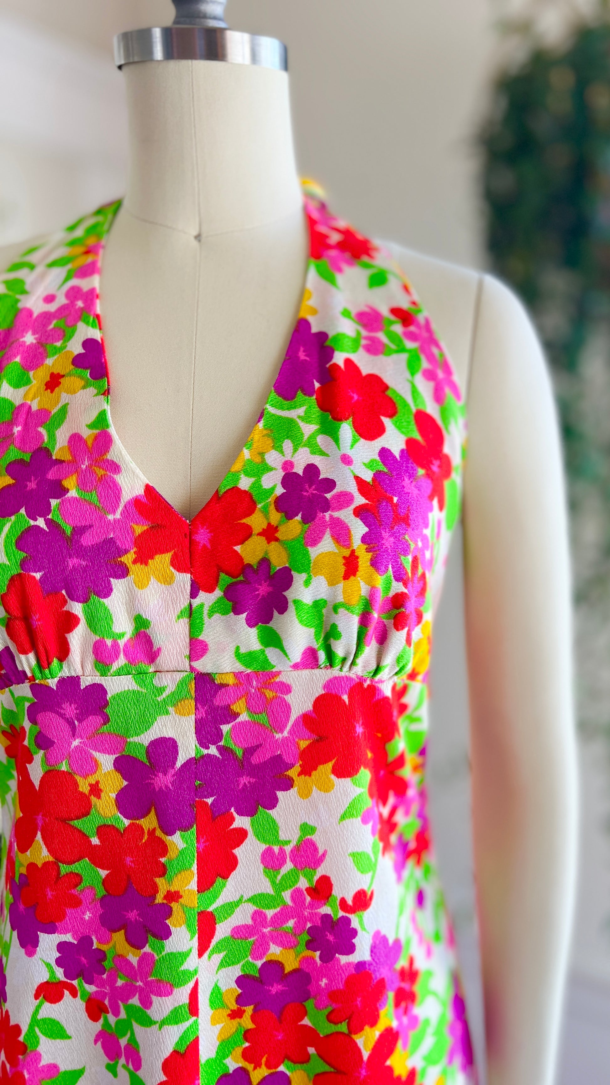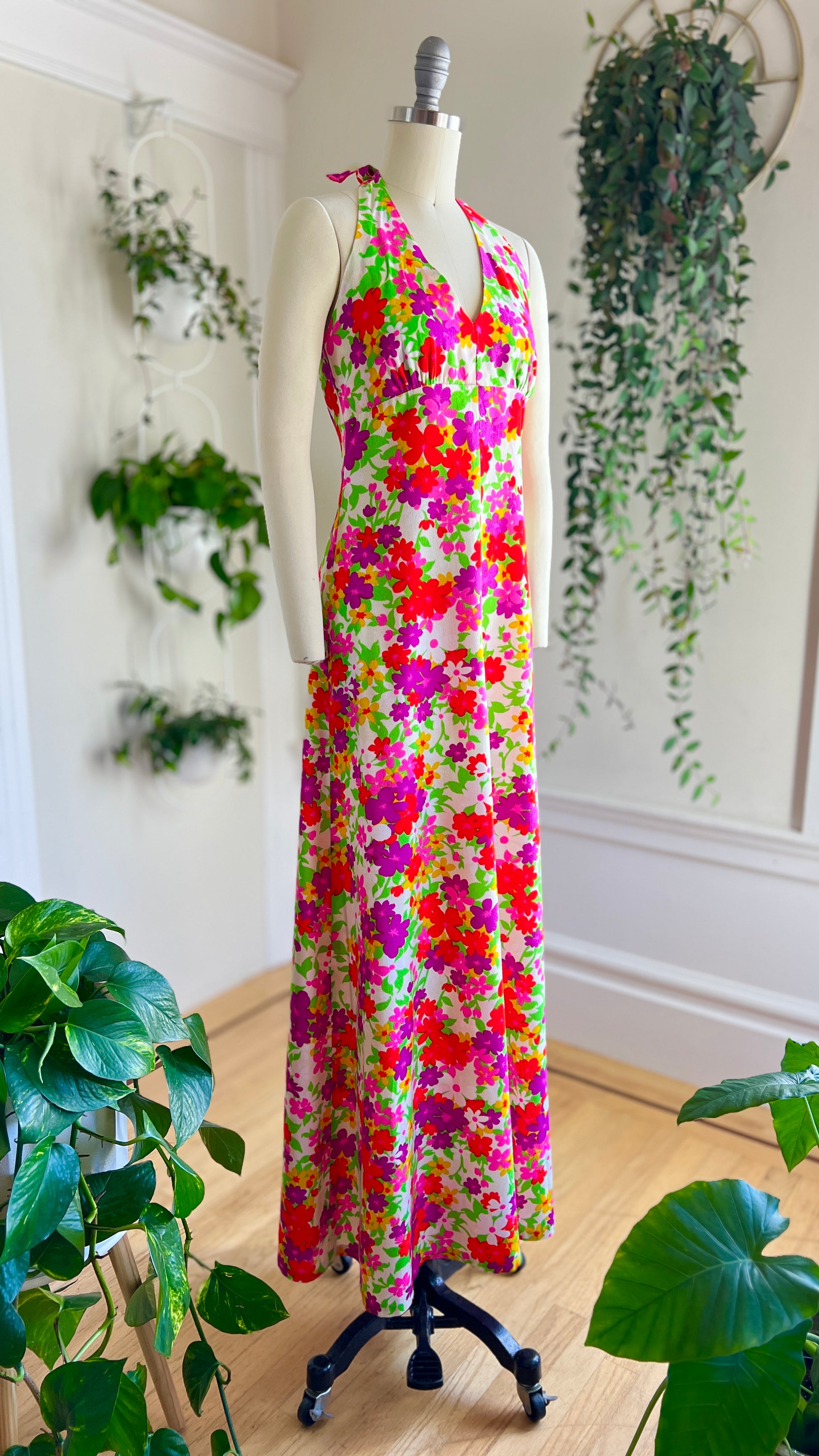 1960s 1970s Floral Halter Maxi Dress | x-small