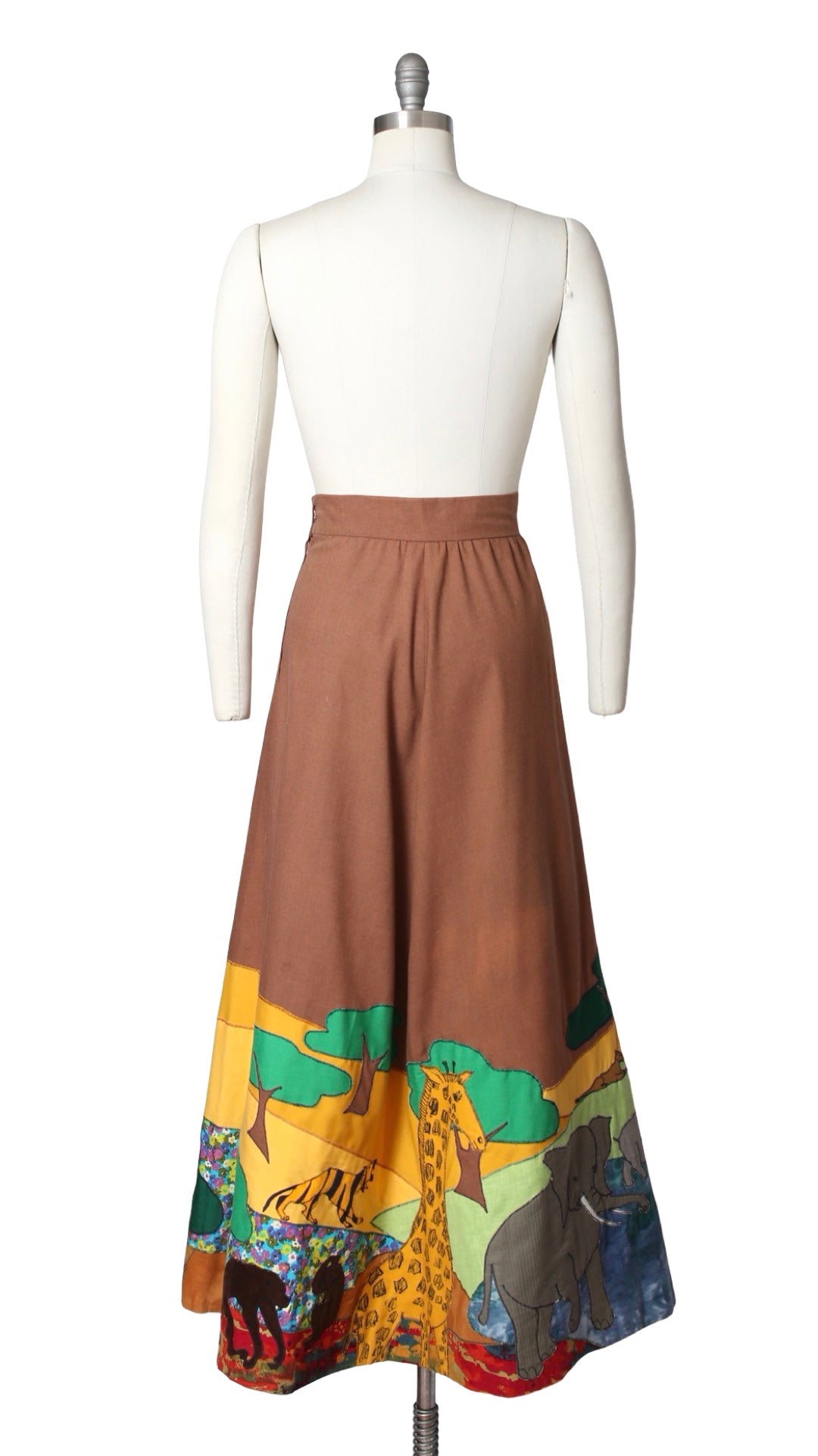 1970s Hand-Appliquéd "Water Hole" Novelty Border Print Skirt | small