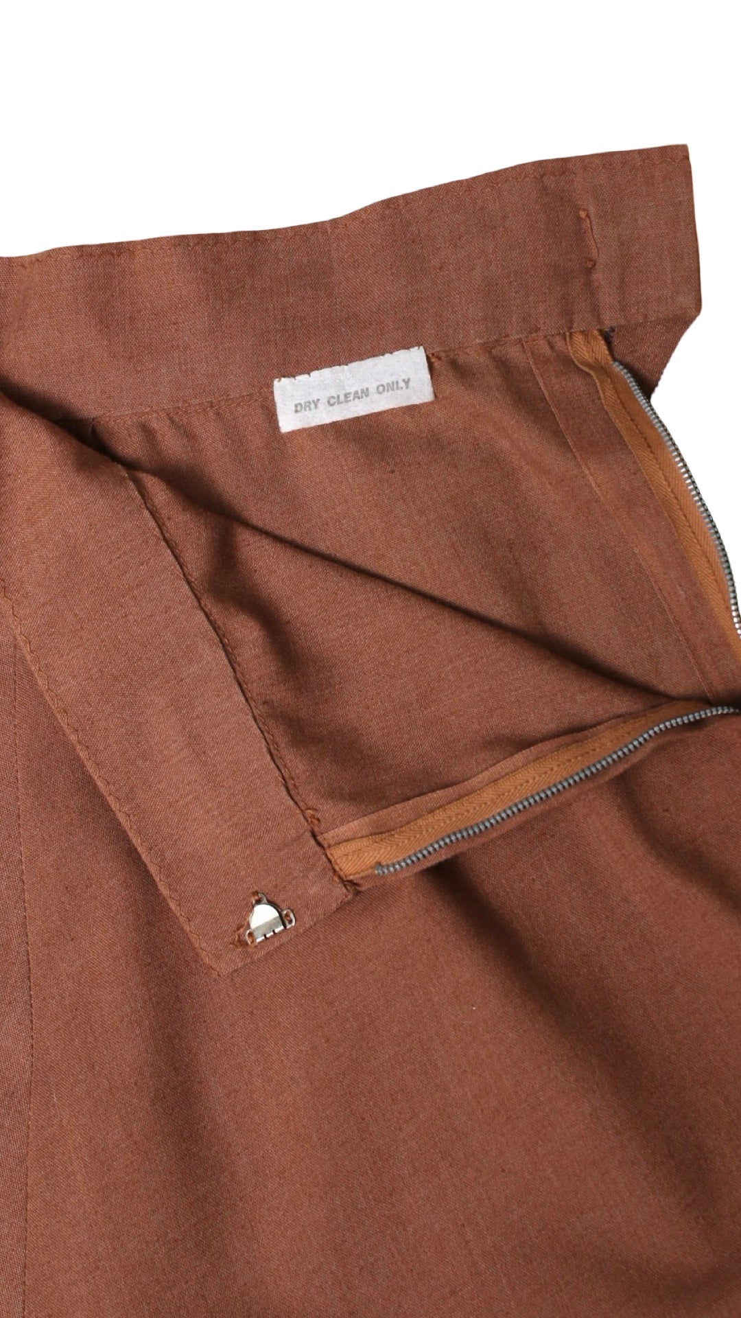 • metal side zipper + hook/eye closure