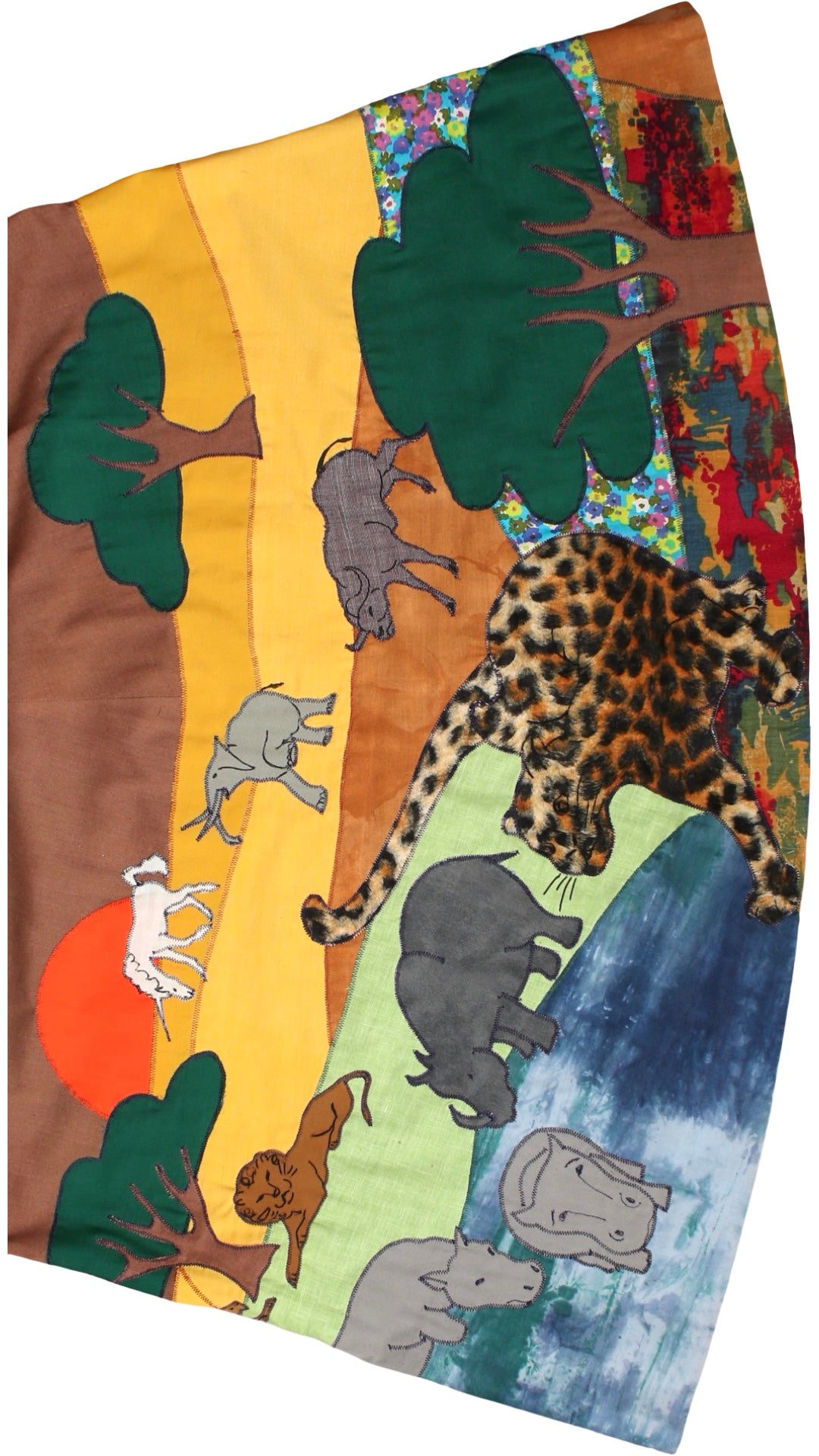 • novelty border print with hand-appliquéd animals in various fabrics